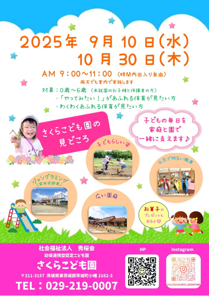 さくらこども園の溢れる魅力をお子様と一緒に体感してくださいね(*^^*)