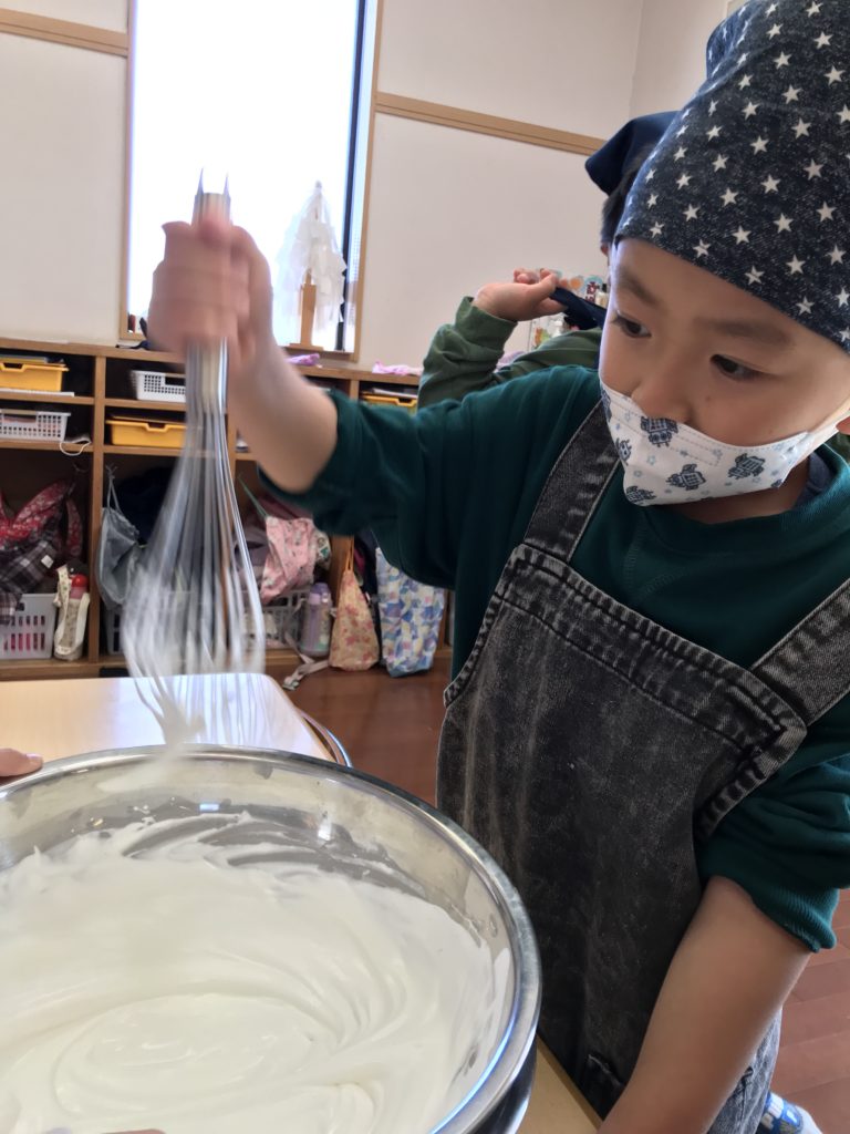 生クリームを泡立てるところからスタートです‼️👩🍳🥛