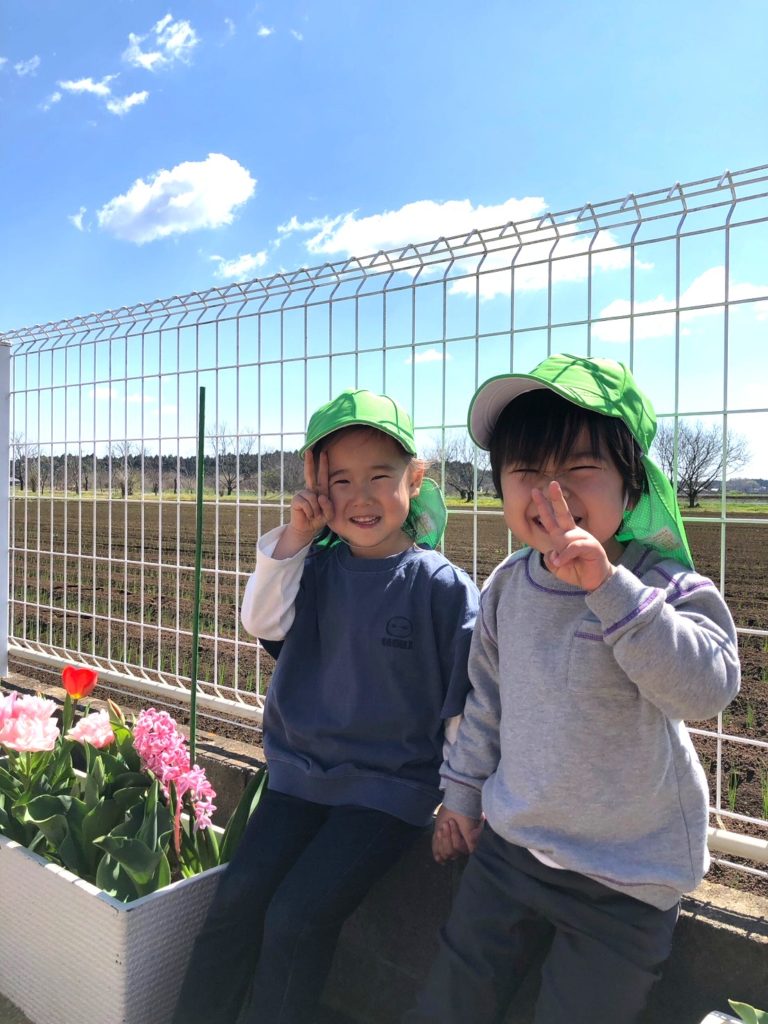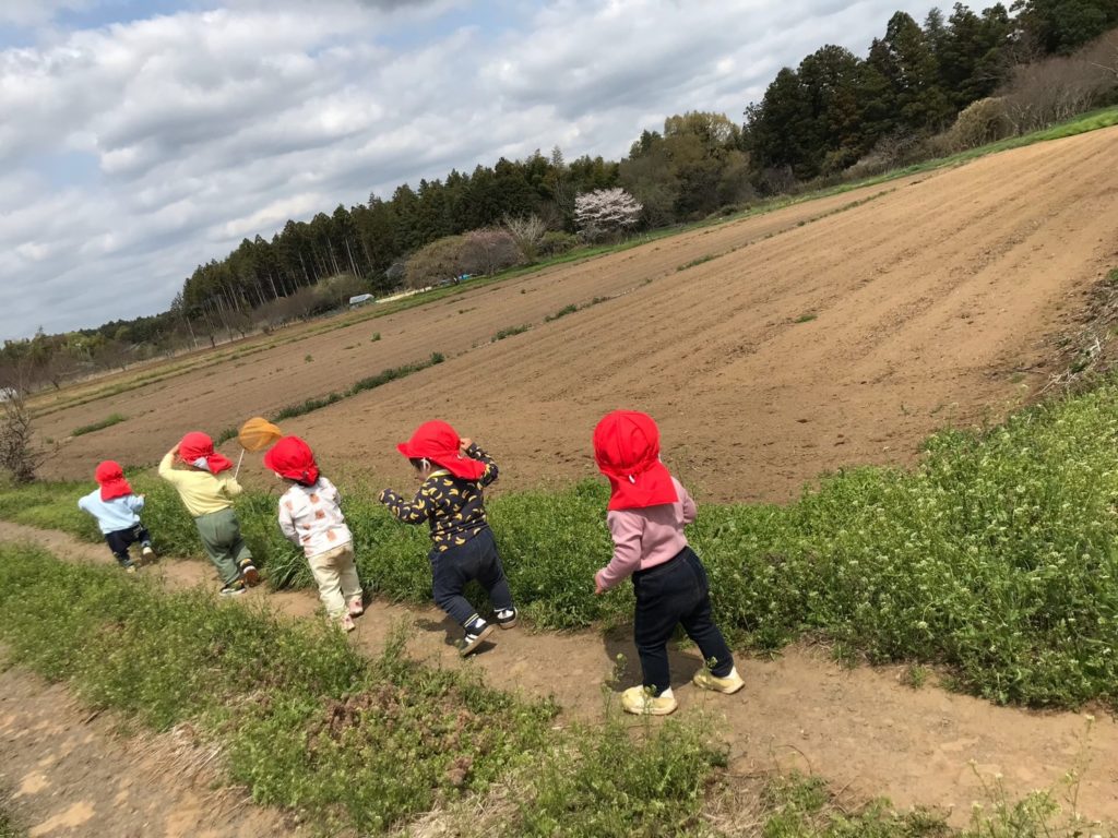 晴れた日には、広い園庭で思い切り遊んでいます。この時期、散歩も気持ちがいいですね!