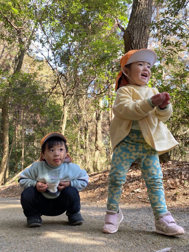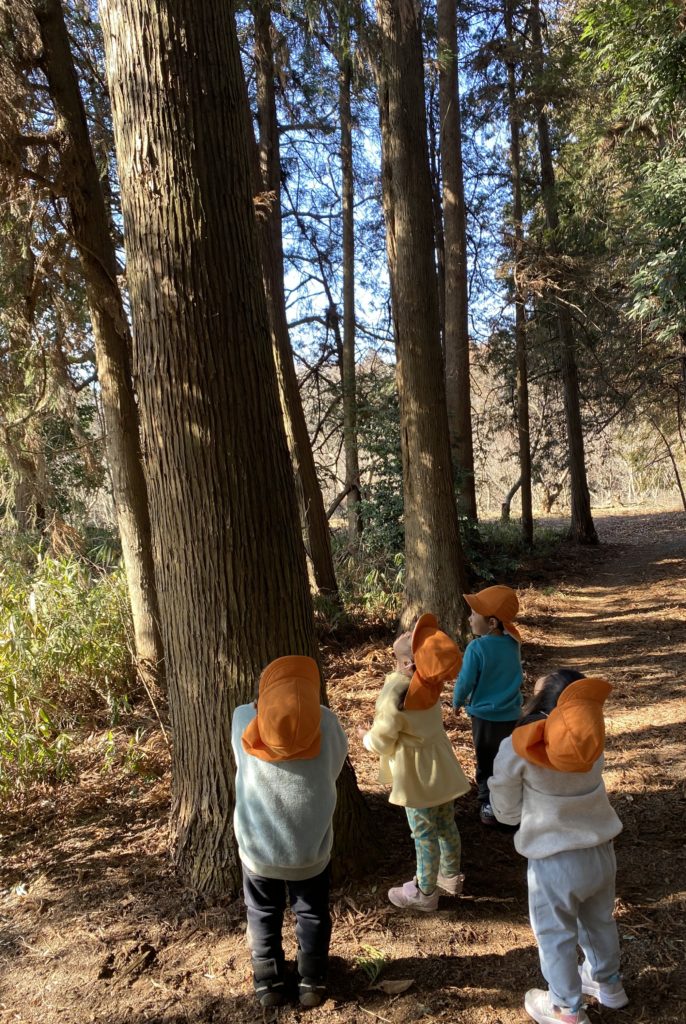 歌いながら、木の上を真剣に探す小さな探検隊⭐