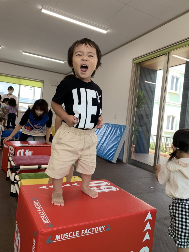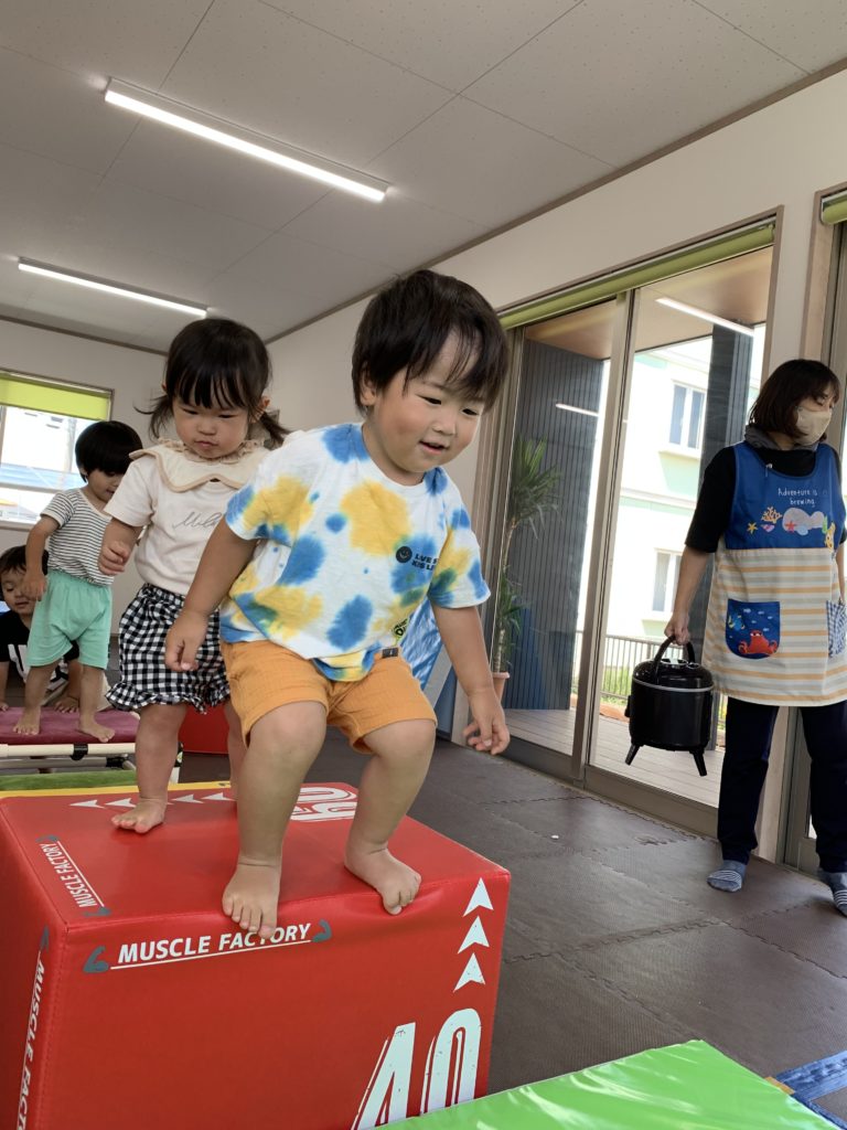 プライオボックスによじ登ったり、勢いよく飛びうつったりと、全身を使って挑戦する姿があふれていました。