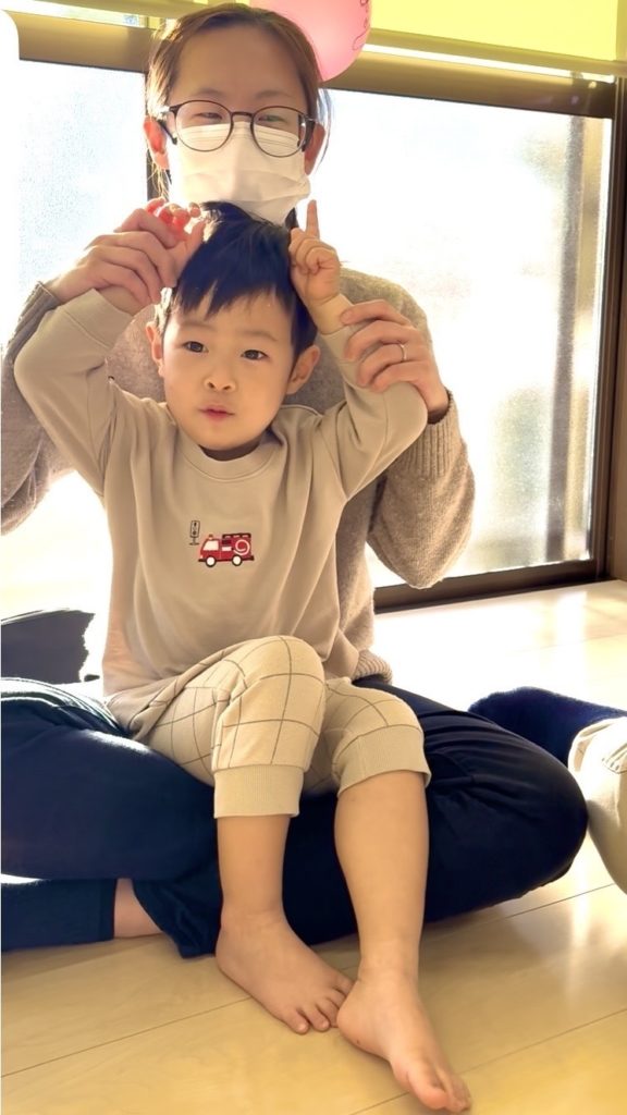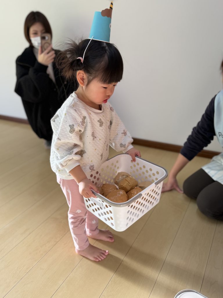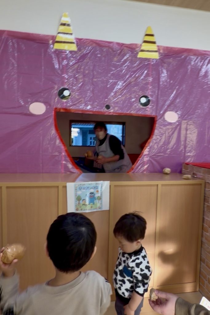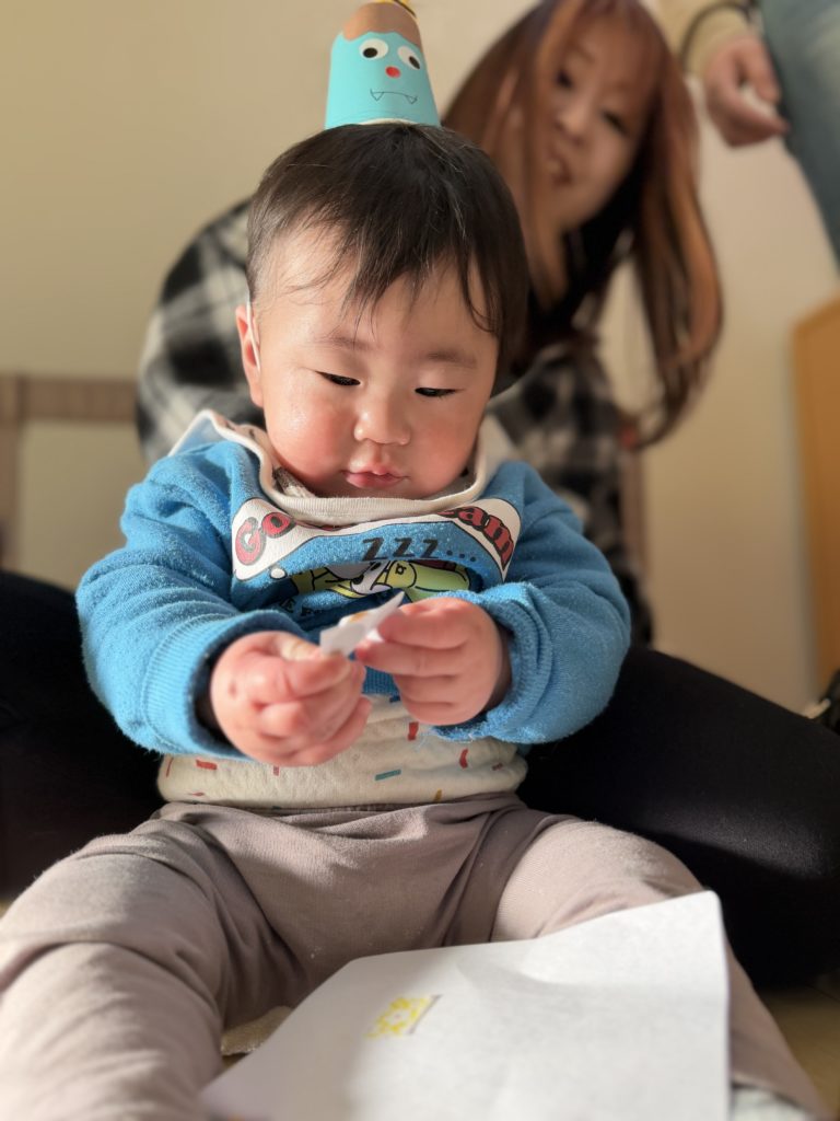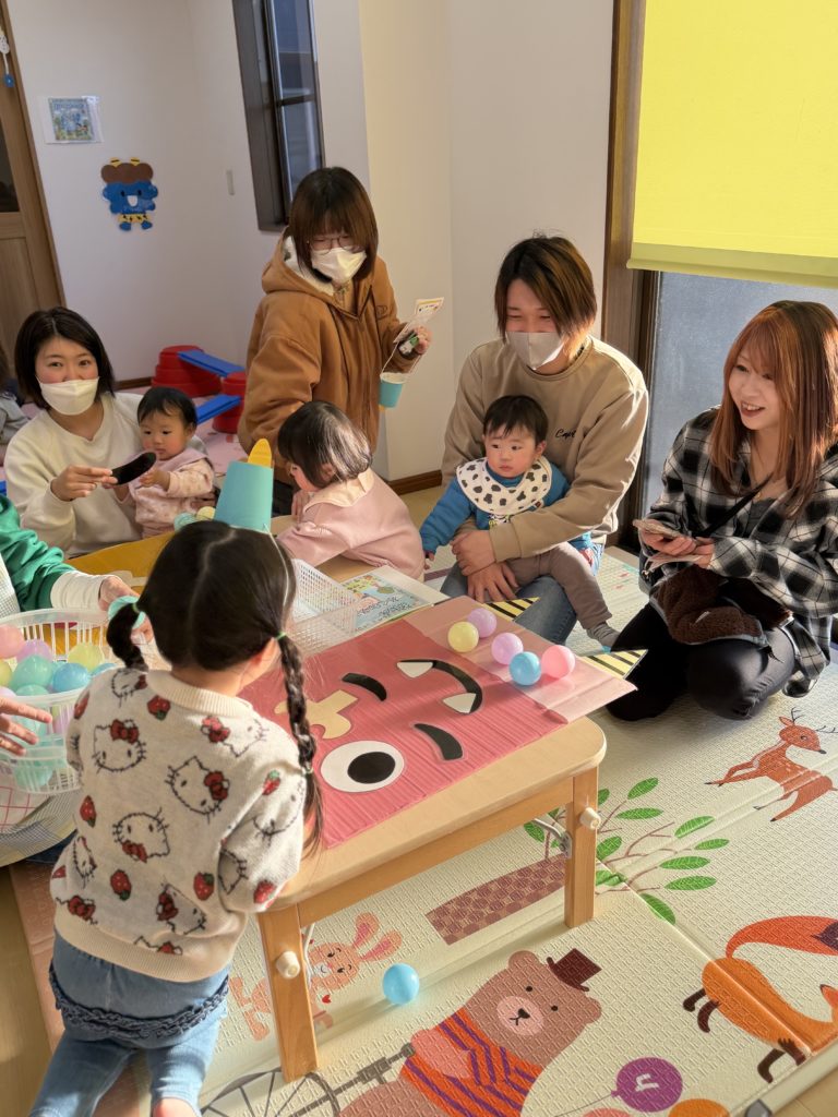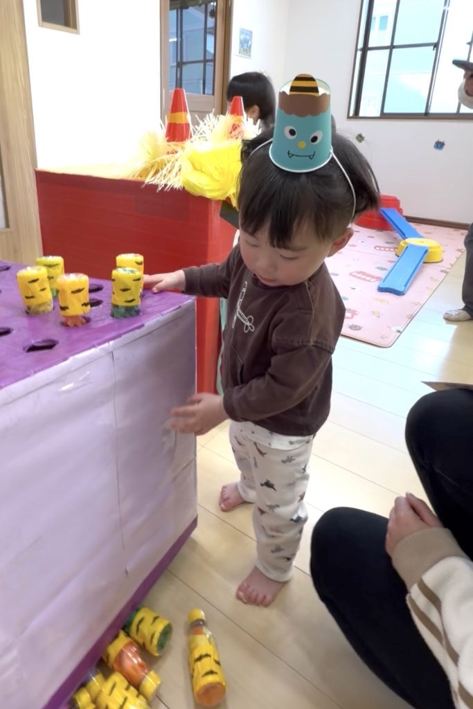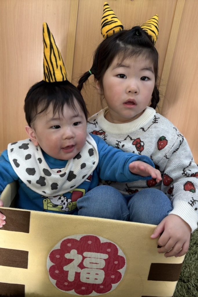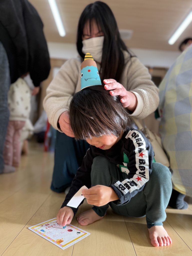 鬼の帽子をかぶり、かわいい鬼さんに変身!