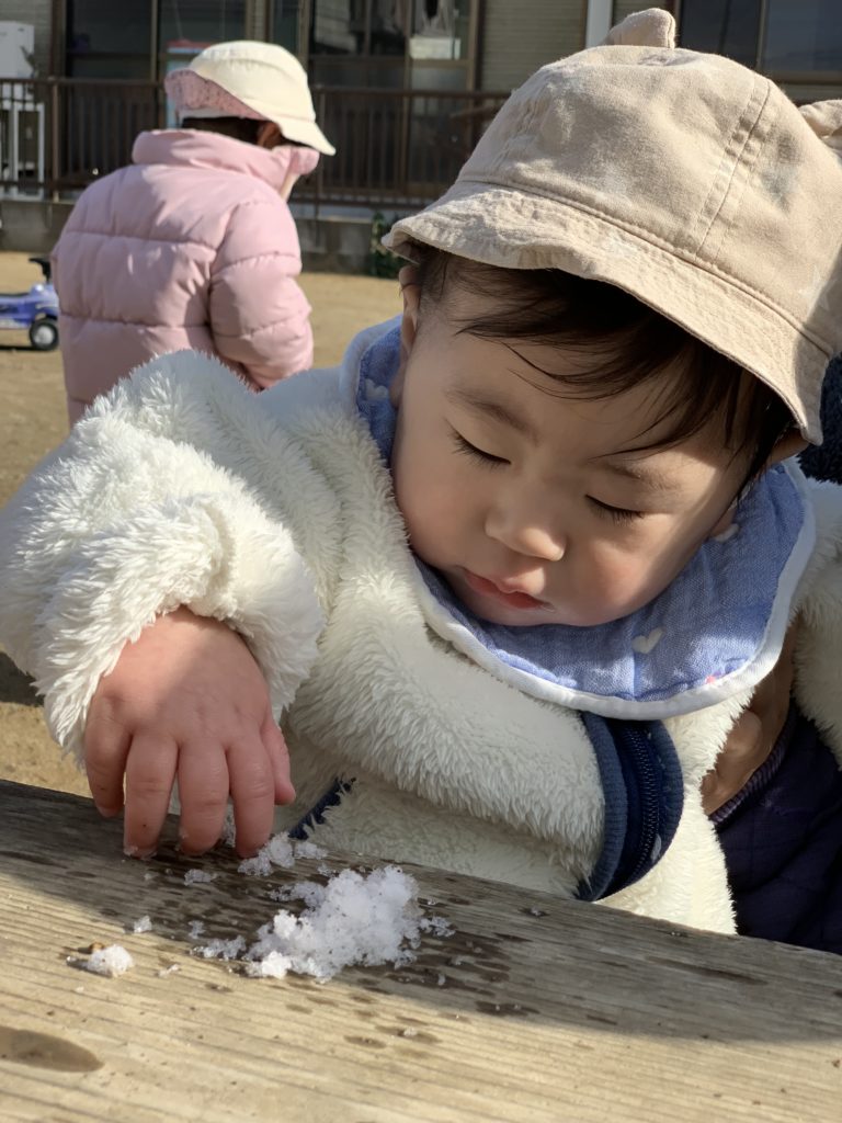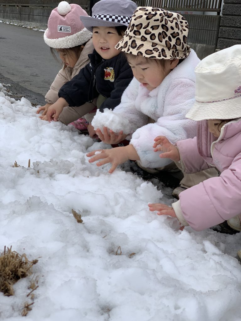 冷たい雪に、そっと手を伸ばす子どもたち。