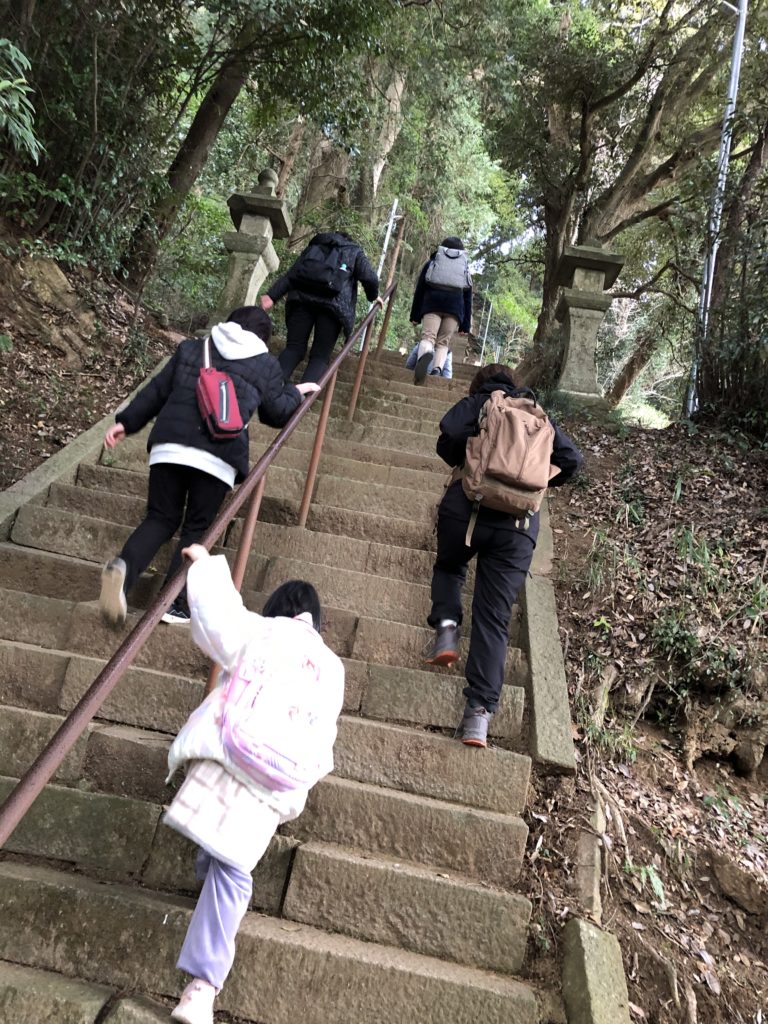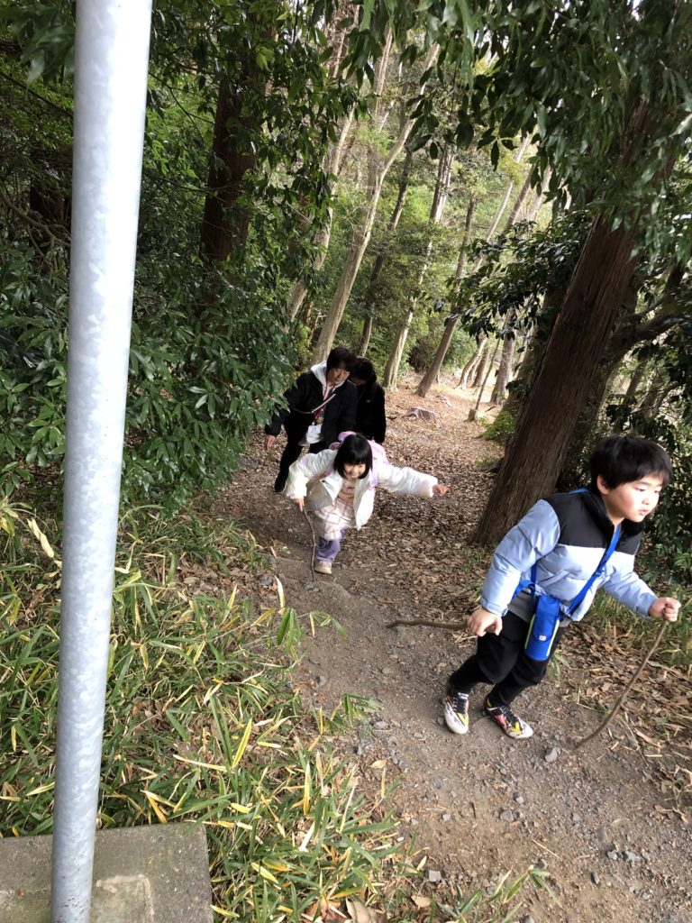🏔山道を登り神社へ。1年生もがんばりました👍